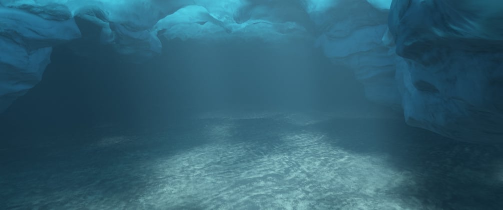 A Terragen 4 project demonstrating an underwater environment with frozen ice flows above.